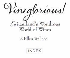 The index for my Swiss wines book Vineglorious! is now online, and I’m starting to add links to related information on the web site, making it a living index. If, for example, you want to find Amigne in the book, you’ll find the page listed in the index, but you’ll also find a link to all articles on Ellen’s Wine World that mention Amigne.