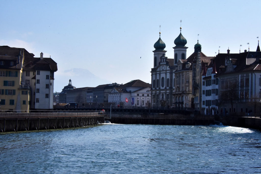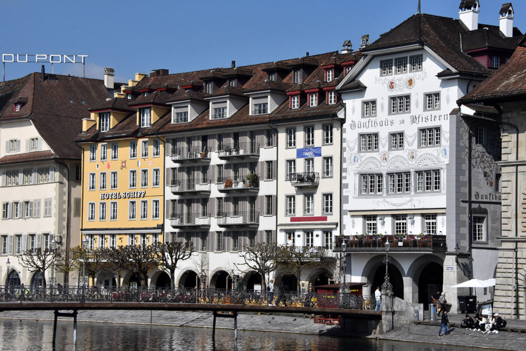 In two hours you can do a pleasant walking tour that goes from the main train station over the main bridge towards the Old Town and then backtrack across the world-famous covered Chapel Bridge (beware the sluggish tourist groups!), past the Jesuit church where you must stop in long enough to admire the interior of Switzerland’s first baroque sacred building. Wind through little streets with fine boutiques until you reach the “other” wooden bridge, the Mill Bridge, where you can read about the history of the small dam there. If you need a break from walking, just before that you pass the waterfront Opus Vinothek, which has an excellent selection of Swiss wines by the glass or bottle, to take out or enjoy in the restaurant. Back on foot: cross over and let yourself wander through the shopping district and admire the Medieval architecture as you head towards the Old Town, the Museggmauer city wall, the Bourbaki panorama and finally, without fail, allow time to sit in front of the Dying Lion, also called the Weeping Lion monument, which sits in a small park.