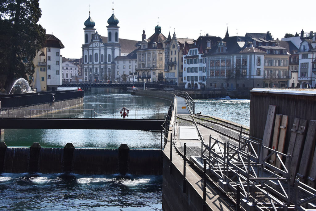 Summer with flowers everywhere and beautiful boat rides has its advantages, but off-season Lucerne has much to offer, starting with fewer bus tour groups and the greater likelihood that you’ll be able to hear some of the music for which the city is famous. I had fun watching workers scrub and polish and mend the city as it prepares for summer visitors.