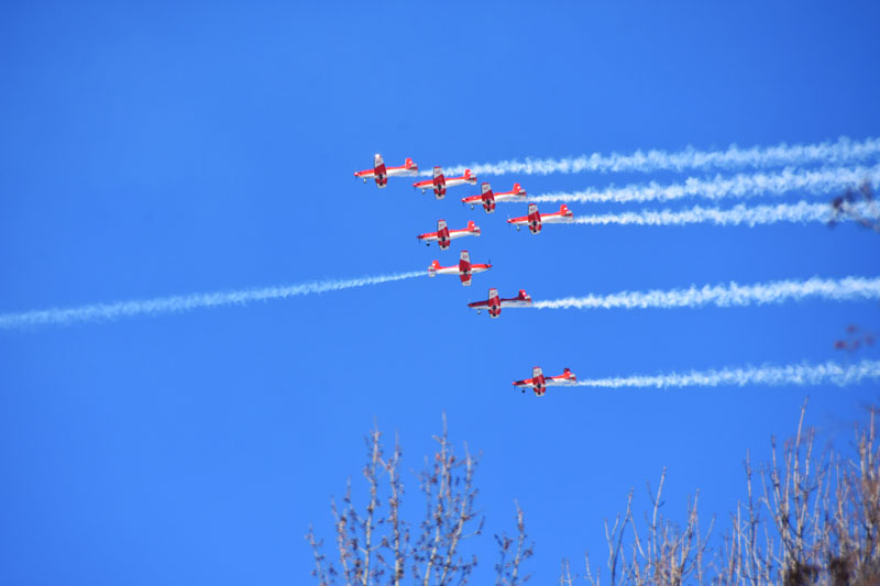 Enjoy the quiet dawns and sunsets, the brief but spectacular orange moon rise (which reminds me, I must soon try the bottle of orange wine from Neuchatel that is in my cellar), the melting slabs of snow on the Zinal glacier and the air show. It isn’t so bad playing tourist while staying home.