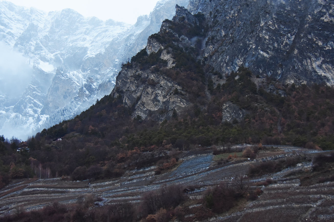 Chamoson snowy mountain vineyards_010319