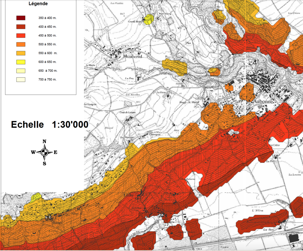 Specifically, Curzilles is the slope on the right as you leave the town of Aubonne heading downhill towards Féchy. Soil studies done in the past two decades show that Curzilles has a small patch of rough, sandy soil (good for creamier wine texture) but it is mostly calcareous soil with compact limestone base, where roots spread easily. The study done for Féchy notes that “This type of soil gives wines a flinty mineral character and a powdery texture in the mouth.”
