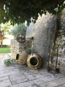 I nearly missed the signposted turnoff for Gressac, for the collection of fine old farm buildings is hard to spot behind a wall of trees on a hilltop. I was also busy wondering how many boar families were lurking nearby, since I was hoping to sample some boar meat and other local treats during my stay in Gard.