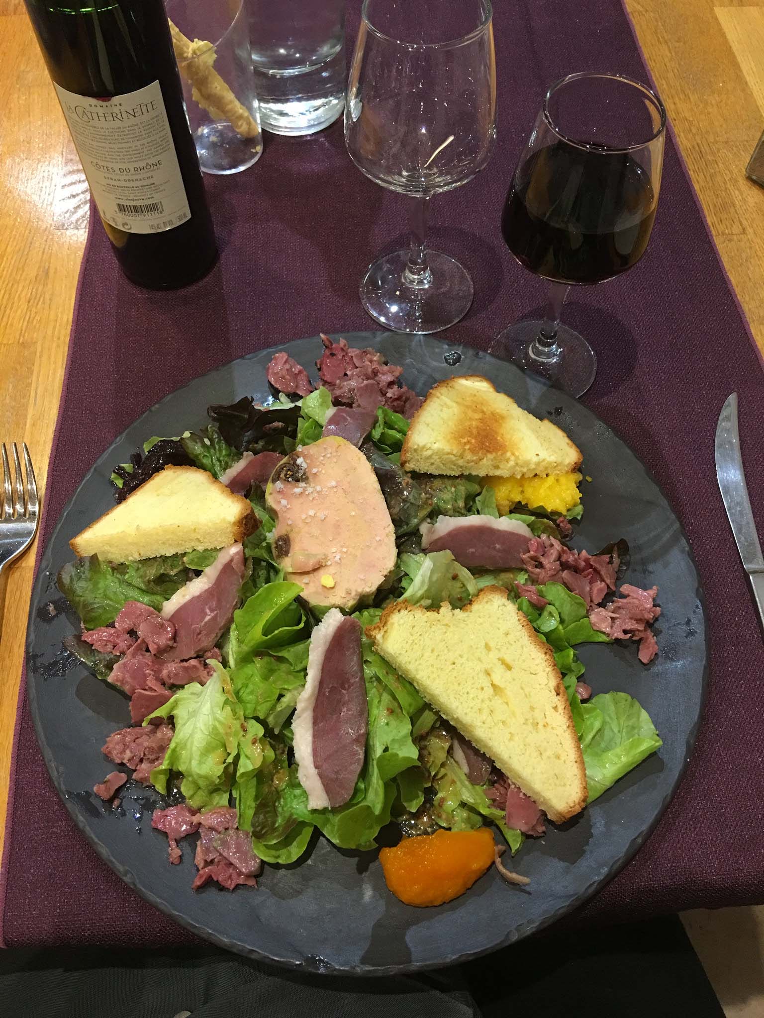 wine foie gras salad Cantonnade restau Goudargues France_220916 19/02/2017 by Ellen Wallace Leave a Comment