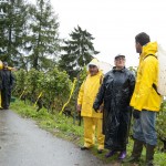 I headed back to Lake Geneva and studied the harvest situation around Rolle, Tartegnin and Mont-sur-Rolle, where rain was setting in, a sure thing for making a wine producer unhappy. In some areas the pickers were giving up for the day, but on the edge of Féchy, next to Bougy-Villars, where workers for Hamel winery were cheerfully carrying on, wrapped in bright macintoshes.