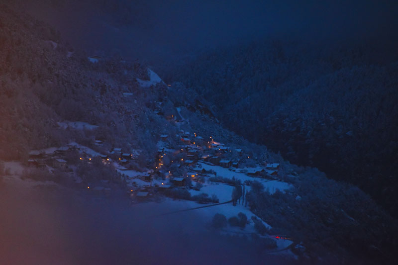The lights came on far across the Rhone and up the Val d’Anniviers as darkness fell.