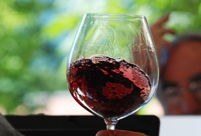 Photo, below: much is learned about a wine simply by looking at it in the glass, watching it move.