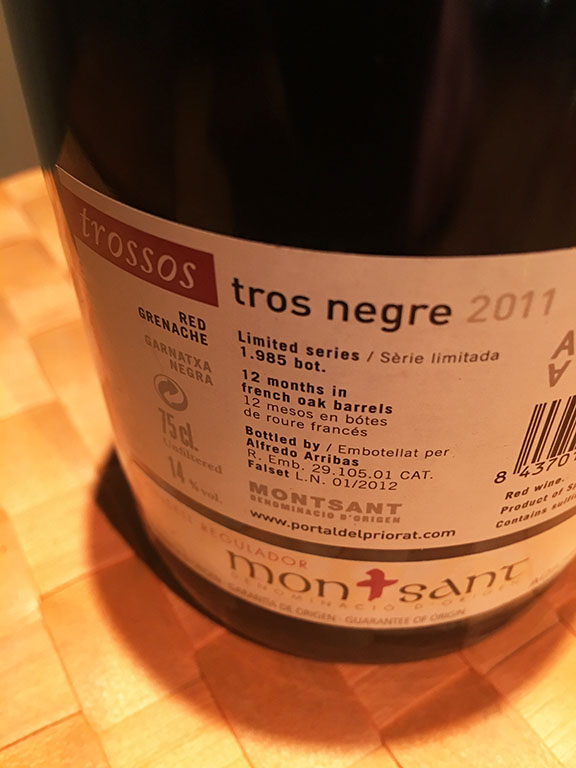 wine red Spain Priorat Trossos Alfredo Arribas Tros Negre_030318 06/03/2018 by Ellen Wallace Leave a Comment