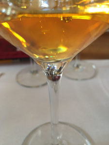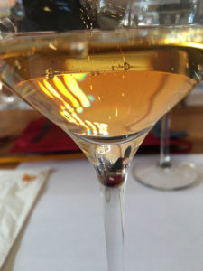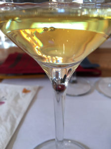 Mi-flétrie, or partially withered grapes. Very deep gold, beautiful to look at. Nose: oranges, apricots. The mouth is very rich but not overwhelming. Clavien: she’s enchanted by the robe. The nose has an oriental touch and the mouth is all balance. A complex wine that we keep retesting – the nose continues to evolve beautifully, graciously.