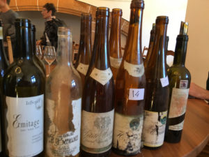 The wines were all from the cellar of Marie-Thérèse Chappaz’s father. They hadn’t been moved since he placed the first one there in 1968; most were added as new wines. Chappaz is president of the Charte; she is also one of Switzerland’s most respected wine producers, so the guests were keen to see what treasures her father’s past had to offer. We were not disappointed, and there were many wonderful surprises.