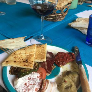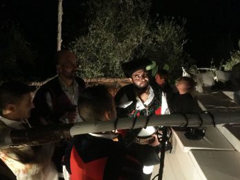 Happily, next to the shop, which is open in the evening, is the cozy , outdoor Tablao bar. It was in this outdoor space, just as night fell, with candles flickering near the sparkling wine and firelight from braziers, that I had a musical experience which sent shivers up my spine. A weirdly haunting noise came out of nowhere, almost like animals – an hour before I’d been listening to nearby cows and sheep. It turned out to be four men, the haunting and eerie Sardinian polyphonic singing that has been done here for centuries. They had been invited to entertain my group and gave us an acapella Sardo poetic song about wine and love. Polyphonic singing here, like jazz, relies on improvisation, with four voices that sometimes sound like instruments. While tourist versions of this musical tradition are often not so impromptu, be sure to say yes if someone gives you a chance to hear this music, which is on the Unesco intangible cultural heritage of humanity list.