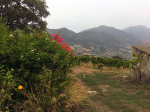One of my most treasured moments during this trip came while we visited what is possibly the island’s highest vineyard. There is no winery here, just a small house used by workers at times during the season when the vines require heavy labour: our van had trouble getting up the steep gravel road and we spooked a wild goat out of the scrub. This is no place for machines to work the vineyards.