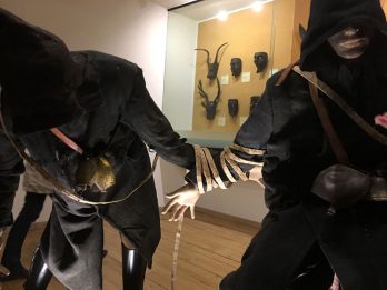 A curious side trip was an hour-long visit to the Museum of Mediterranean Masks in Mamoiada, a wine village high in the hills, surrounded by rough gray peaks. As dusk fell and the mountains seemed to draw closer I watched the museum’s very good short film on mask traditions, featuring the town’s own “Mamuthones” and “Issohadores”, part of the tradition of Carnival here. The costumes and explanation were startling enough, but I kept thinking it must be extraordinary to visit in winter, with howling winds, bells echoing the march of heavy feet, snow blowing through cracks in doors. This might be the 21st century, but it would be easy to forget that.