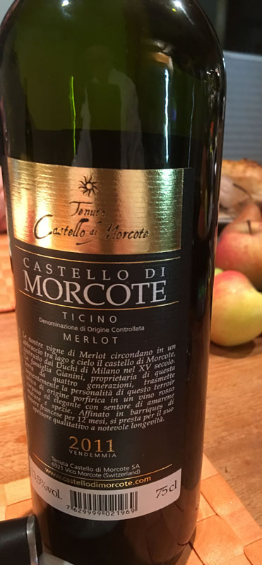 wine red Merlot Ticino Castello di Morcote 2011_191116
