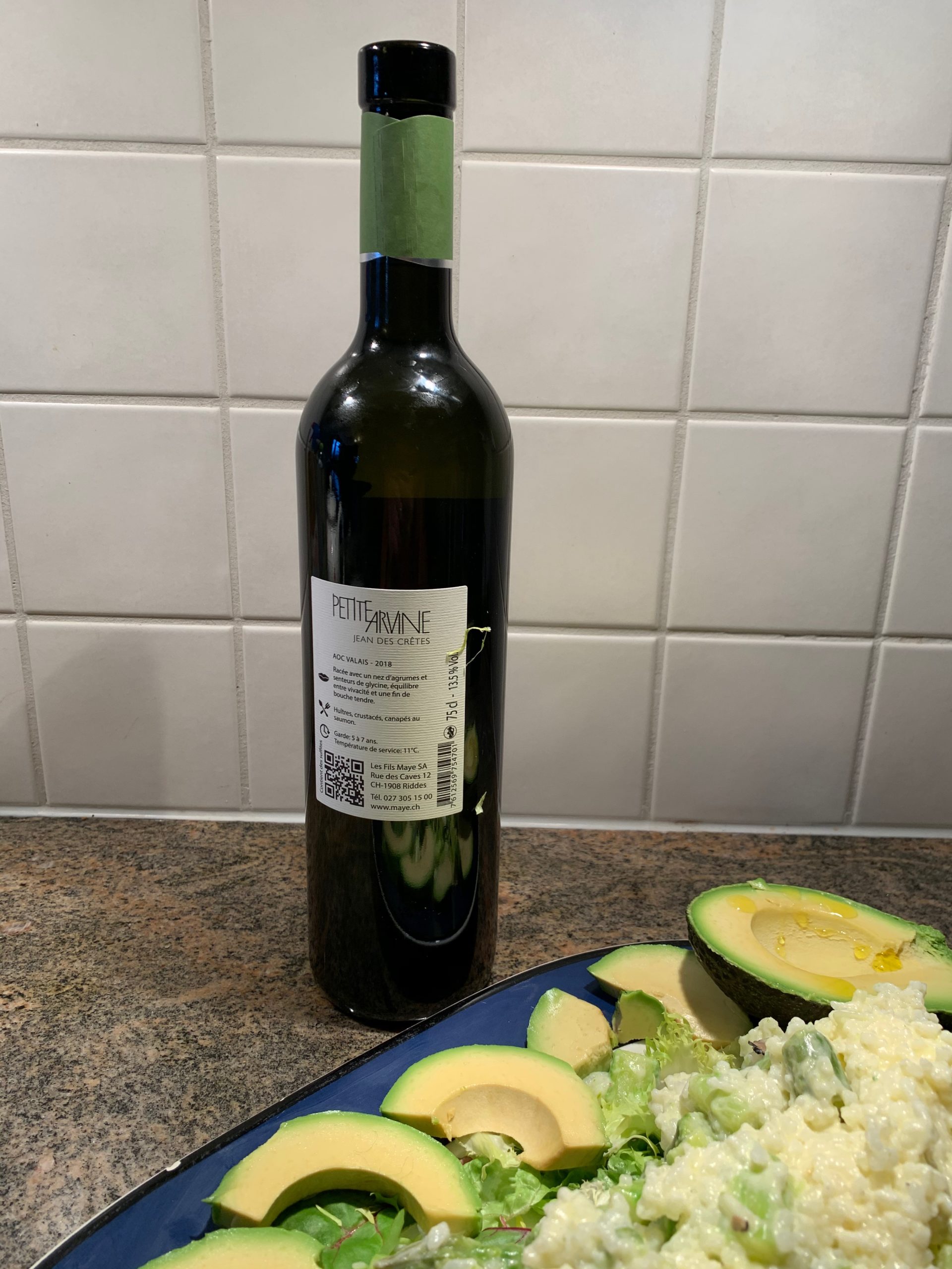 The main dish was a spicy fish soup, the perfect excuse to try one of the bottles of wine I picked up from Les Fils Maye in Riddes just before we were all sent home: their award-winning Petite Arvine Jean de Crêtes 2018.