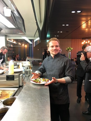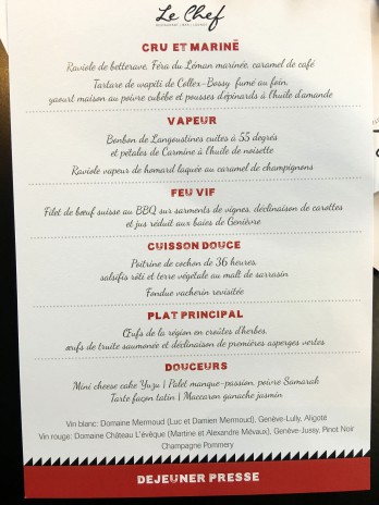 The marketing people have put the emphasis on what the Tribune de Genève last fall called the “hyperactive” not quite 30-year-old chef, Benjamin Luzuy, who owns several food-related businesses in Geneva, including le Café des Voisins in Plainpalais and Gourmet Brothers. He’s completely charming, the golden boy entrepreneur people dream of becoming, enough of a clown to be a photographer’s delight and to film a short TV series on restaurants in Swiss cities two years ago – see the Coop magazine interview with him.