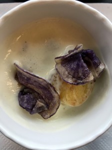 The emphasis is on terroir and on seasonal food, with Luzuy saying “terroir is our playground”, so local suppliers are used as much as possible. Expect four menus a year. The menus feature four approaches to cooking: raw and marinated, steamed, over the fire (naked flame) and slow cooked.