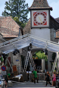 Photos: St Prex’s old town prepares for the St Prex Festival on the main street, with concerts starting there Monday.