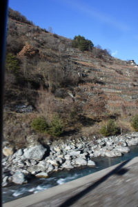 Vispa river rushing towards the Rhone between Stalden-Saas and Visp. In summer it cools off the sunny valley for the small vineyards on the banks above. 08/02/2019 by Ellen Wallace Leave a Comment